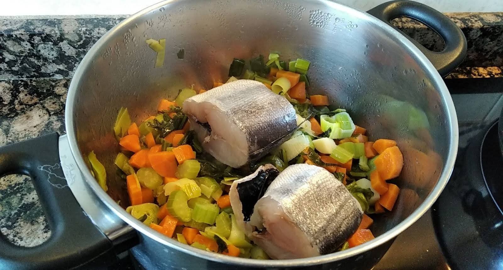 Com que en va sortir una bona quantitat, vam optar per envasar i conservar part del bròcoli. Les pautes per envasar i conservar estan publicades.Les dues receptes en marxa, el bròquil i la base per a la papillota de lluç.La papillota de lluç a la cassola és més sostenible, ens simplifica l’elaboració, ens estalviem encendre el forn, el paper de forn, … Boníssima!