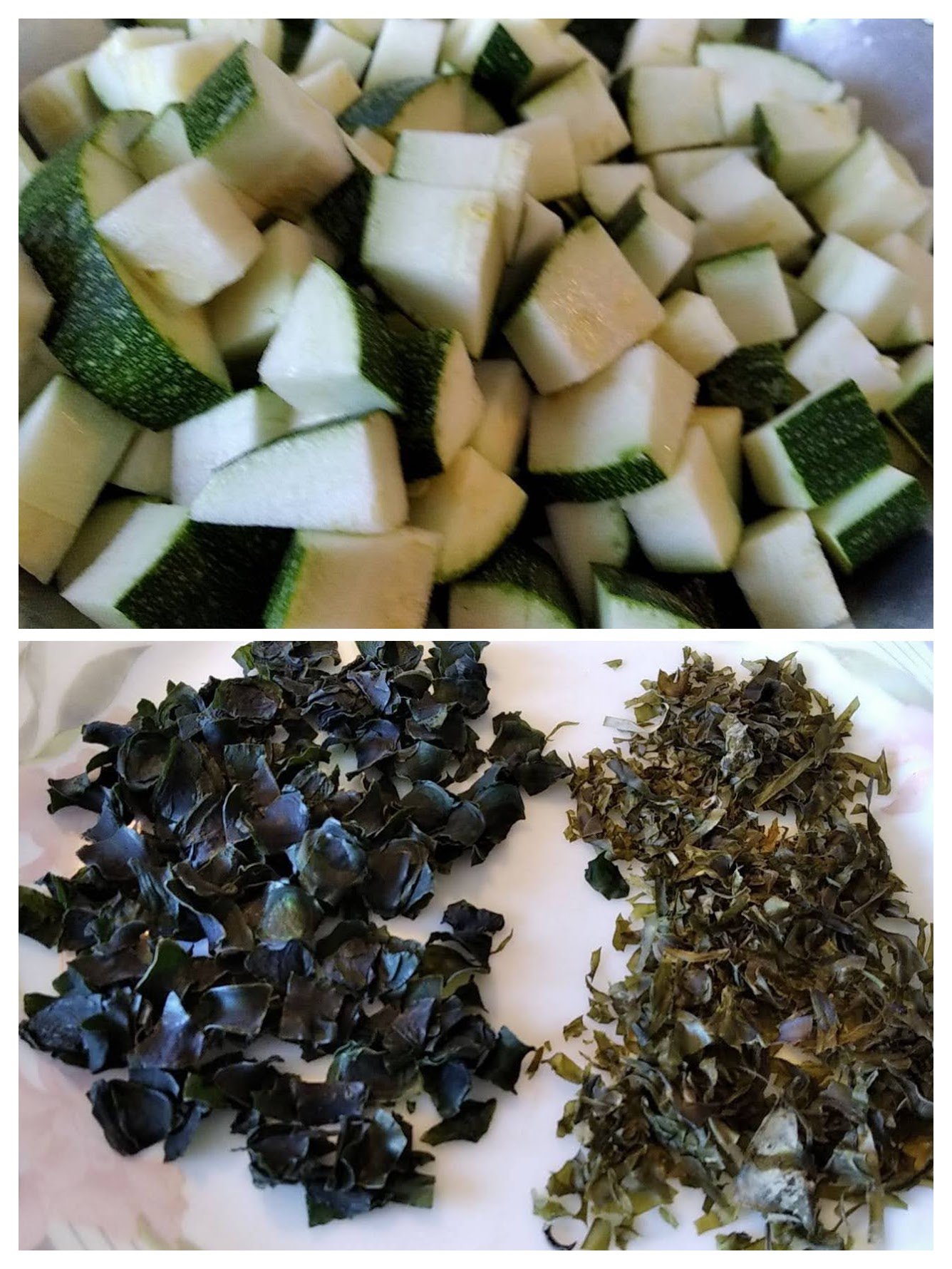 El carabassó amb les algues Kombu al plat, a punt de tast!